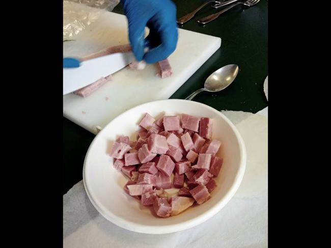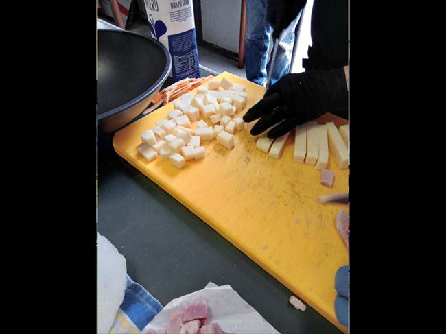 4) si taglia il formaggio a cubetti