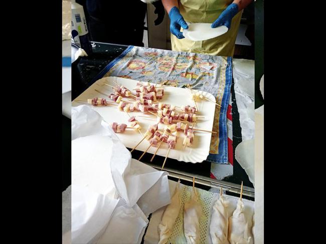 7) si infilza prosciutto e formaggio nello stecco