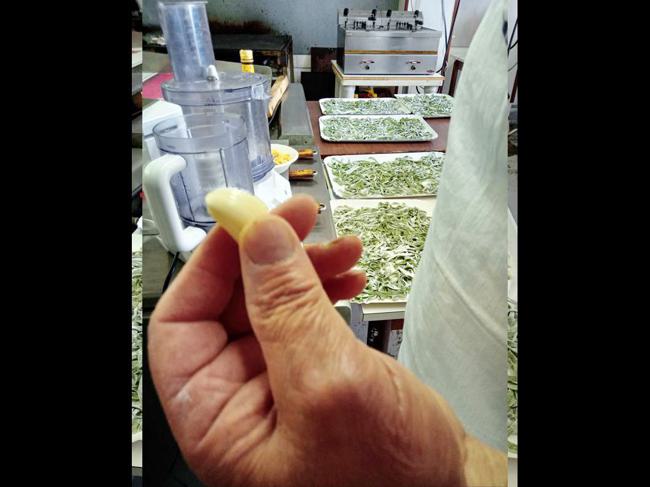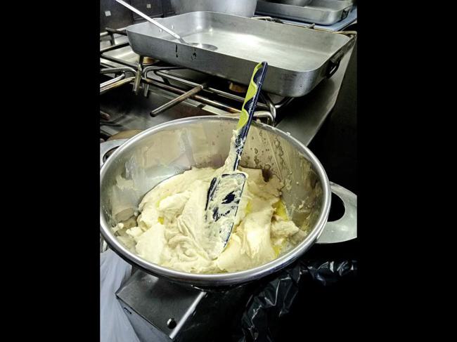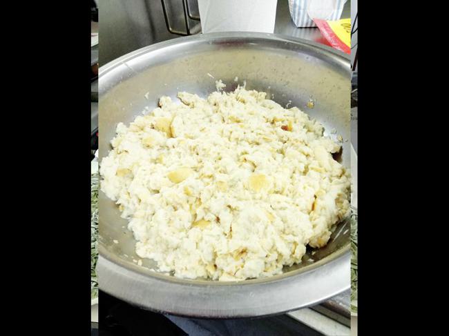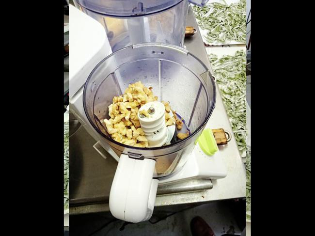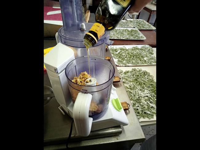 Tritare tutto e aggiungere un po' di vianda (acqua di cottura della pasta)
