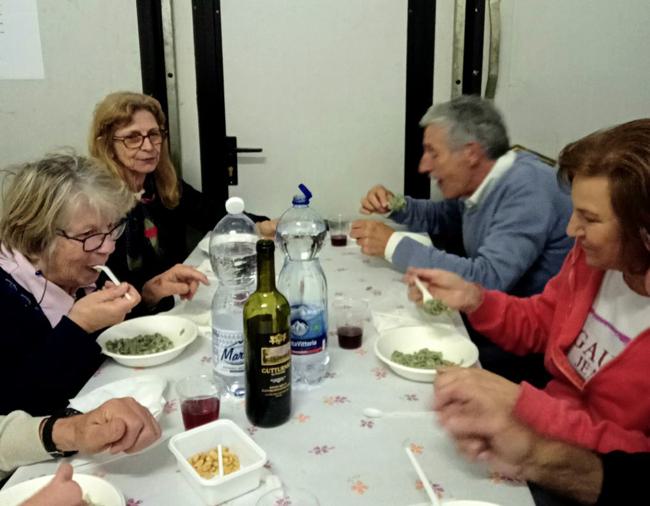 1) tutti al fresco a spellare le noci con pazienza certosina